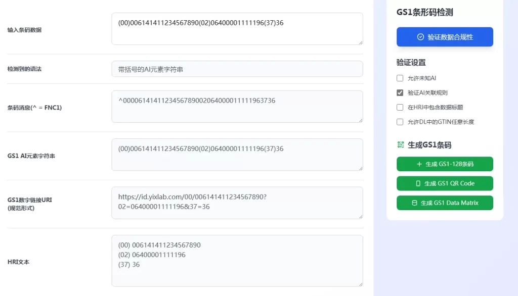- 校验位– GTIN-14的最后一位是计算得出的校验位。使用MOD10校验位算法,计算出的校验位可防止替换错误。