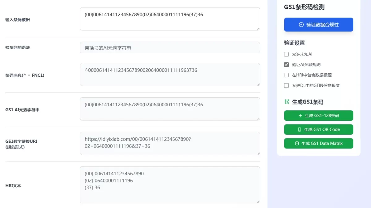 - 官方工具:GS1 Barcode Verification Tool(支持 GS1-128 条码规则校验);