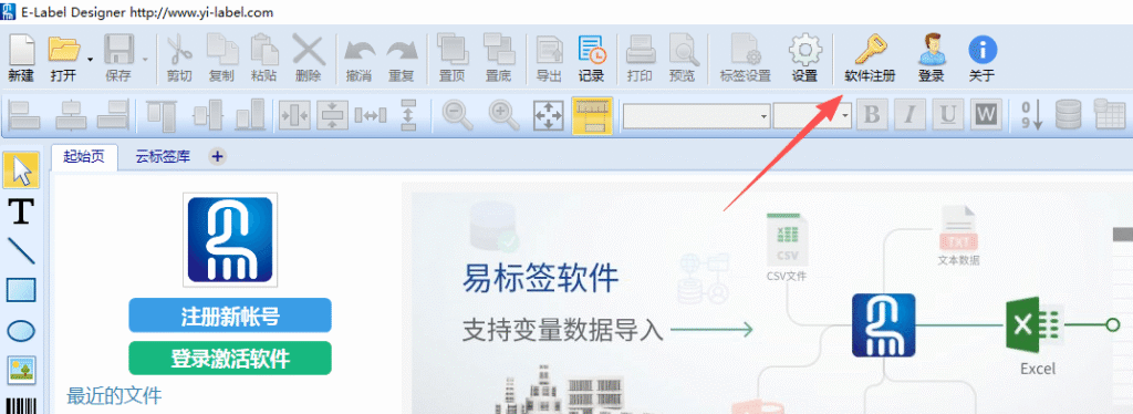 - 联网激活:直接在易标签软件中注册账号,登录后即可免费激活为基础版本。升级为专业版按年付费。